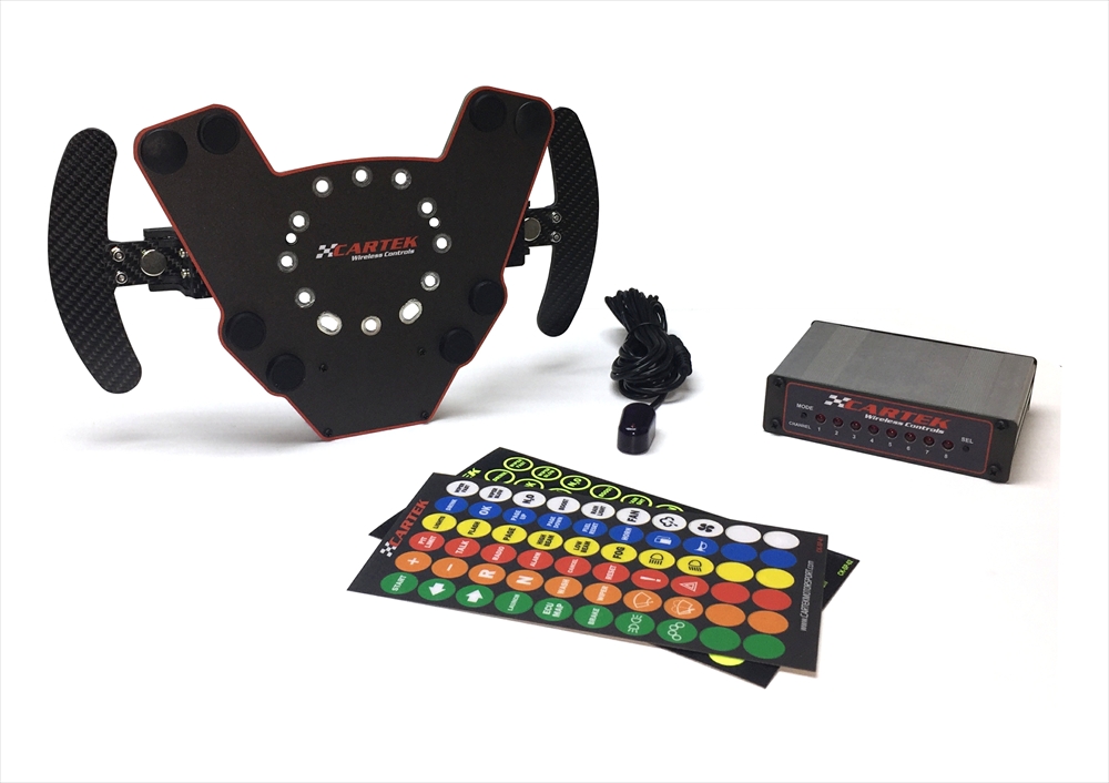 The Wireless Control System from Cartek is the quickest and easiest way to install pushbutton controls to a detachable racing steering wheel. This innovative solution means users no longer spend time wiring in their own switches on to a custom fabricated panel, and do not have to contend with ‘curly’ cords or expensive steering wheel connectors that can damage very easily.